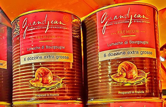 その後、たまたま、デパートで見つけたのが、この缶詰なのですが・・・この装丁じゃ、生々しすぎて、料理としての「エスカルゴ」ではなく、生きている「でんでんむし」そのまま!!