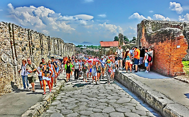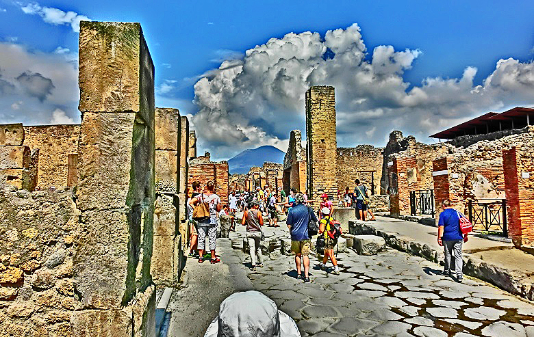 かつて、ローマ帝国の大都市として栄華を極めていましたが、西暦79年に大噴火を起こし、大量の火山灰&噴石に、埋もれてしまいました。その千数百年後に発見され、数百年をかけて発掘作業が進められた現在は、ローマ時代の街並みが残る世界遺産として、多くの観光客を集めていますよ。