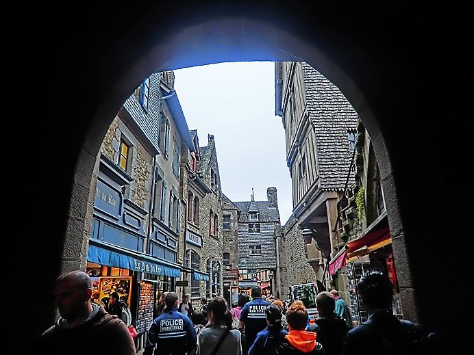 ・・・などと、オムレツ店を左手に見ながら熱弁をふるっているうちに、堅牢(けんろう)な門の中に、潜入していきますよ。