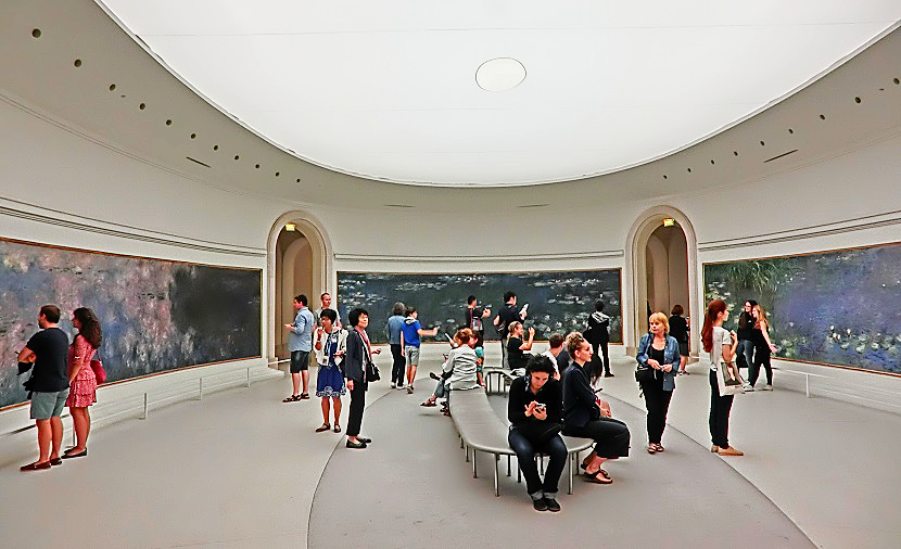 当時は、見た目の派手さ・激しさ・奇妙さを競い合う新たな芸術運動(私は嫌いです)の隆盛により、「大きいだけで古くさい地味な絵」として冷笑されましたが、その後、過激な芸術運動の行き詰まりに伴って劇的に再評価され、現在では、「すべての現代人が鑑賞すべき名作」と呼ばれるようになり、この「睡蓮の間」は、「ルーヴル美術館」「オルセー美術館」と並ぶ、美術愛好家の聖地として知られていますよ。やはり、本当に価値のある作品は、歴史の荒波を超えて、末永く残るというわけですね・・・