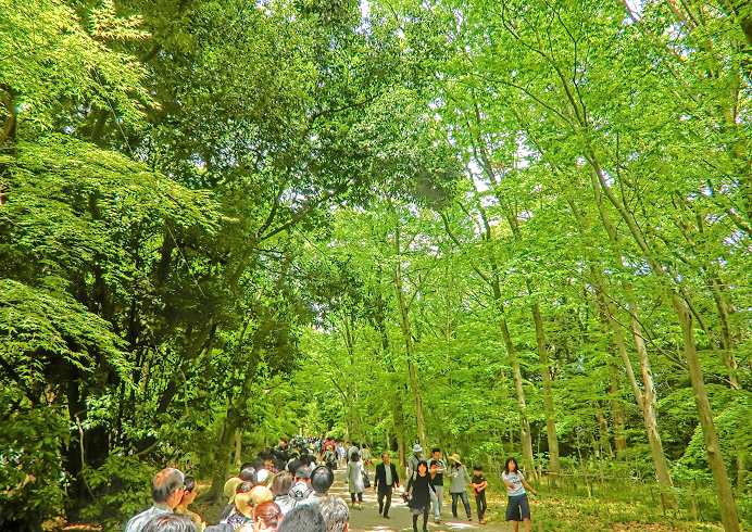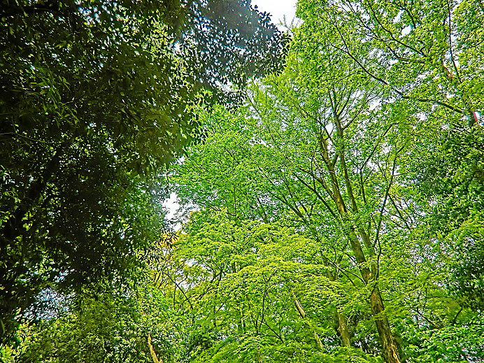 ふと見上げると、目の覚めるような若葉たちが、迎えてくれていますよ。