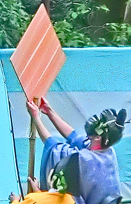 さらに、猛暑対策として、直径30センチの「超大型ウチワ」も持参。
