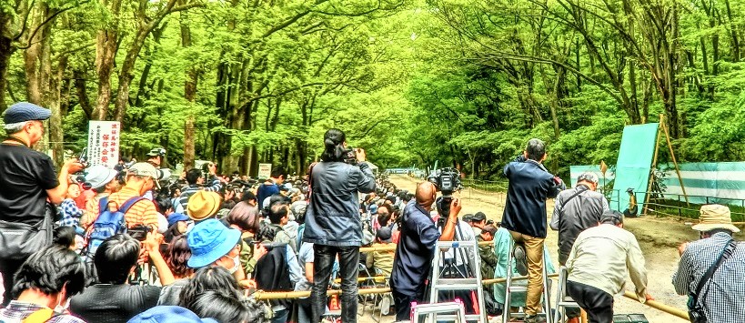 騎馬武者の出発と到着を狙って、陣取っていらっしゃいます。