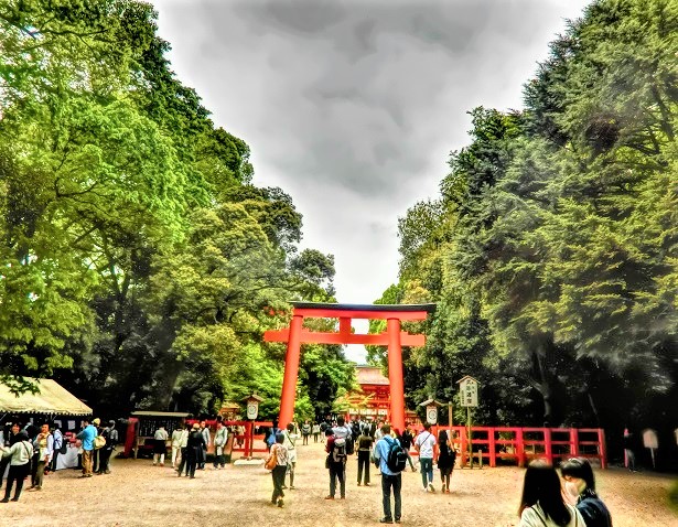 朱塗りの立派な大鳥居をくぐり、本殿へ・・・