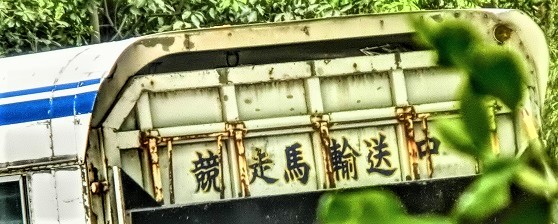 そばには、「競走馬輸送中」と書かれたトラックが置かれていますから、